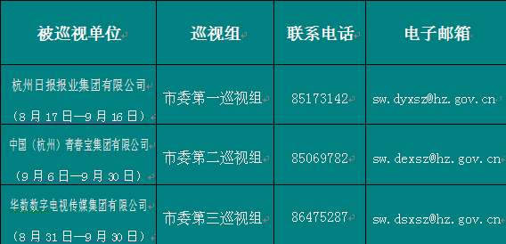 杭州市第四轮巡视公布三个巡视组联系电话和电子邮箱