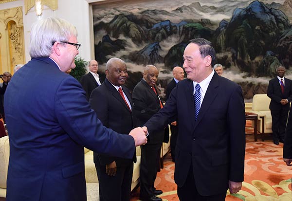 中共中央政治局常委、中央纪委书记王岐山9日在人民大会堂会见出席“2015中国共产党与世界对话会”的外方代表。