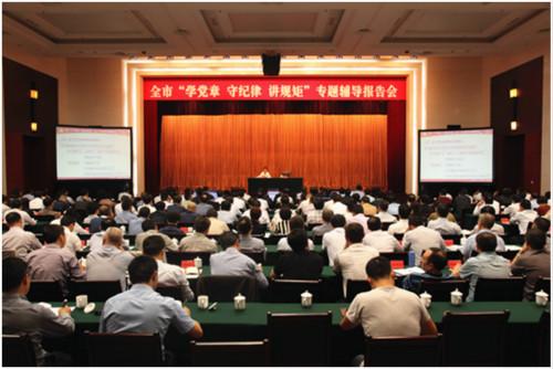 图为成都市举行“学党章 守纪律 讲规矩”专题辅导报告会