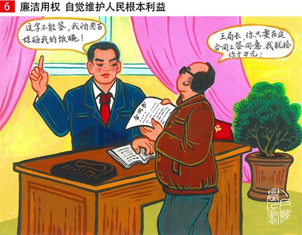 为深入推进新修订的《中国共产党廉洁自律准则》和《中国共产党纪律处分条例》的学习贯彻,陕西省西安市纪委、西安市文理学院和西安市廉政研究中心坚持正面导向,用户县农民画的形式图解《准则》《条例》,重点围绕准则八条规范,以及六大纪律列出的负面清单,按照“紧扣一个条款,列举一个案例, 描绘一幅画面”的思路,创作了集思想性、艺术性、趣味性为一体的93幅农民画,在全市各媒体刊播,并将汇编成《简明读本》下发,旨在以画明纪,以画言理,以画促廉。