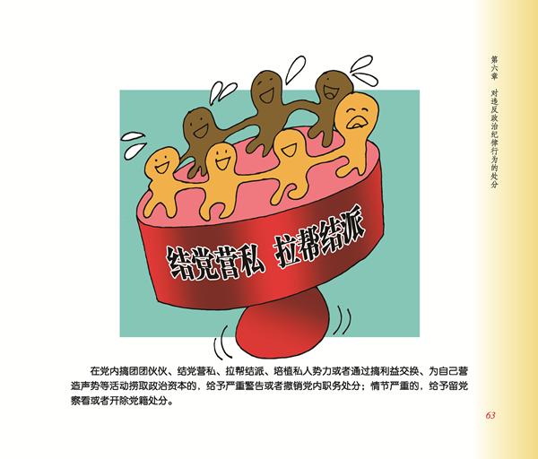 日前,青岛市纪委精心组织创作了《以画释纪——<中国共产党纪律处分条例>漫画》,该书围绕《中国共产党纪律处分条例》中“六大纪律”等内容,创作了170余幅漫画,配有《条例》原文,图文并茂,每一幅漫画和每一条内容互相呼应,通俗易懂,生动、形象、贴切地诠释了《条例》内容。
