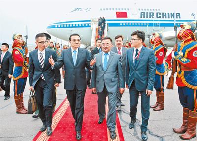 李克强表示,中蒙是“邻望邻好”的好朋友、好伙伴,两国往来密切,合作基础坚实。我期待通过此访,同蒙方领导人共商两国新时期友好、合作、发展大计。中方愿一如既往地同蒙方加强合作,推进双方发展战略对接,扩大各领域合作交流,共同书写中蒙共同发展、共创繁荣的新篇章。