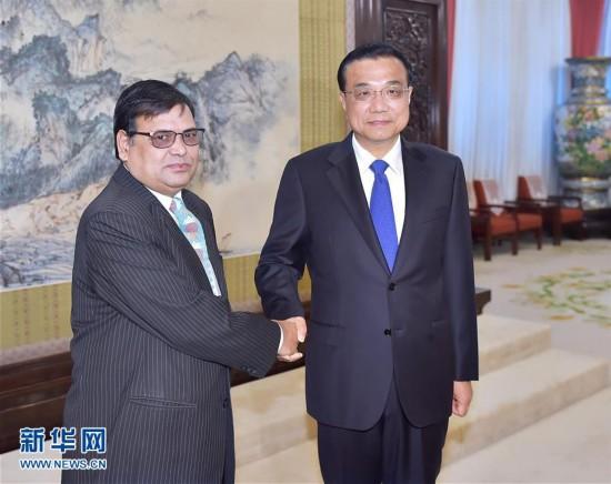 国务院总理李克强17日上午在中南海紫光阁会见尼泊尔新任总理普拉昌达的特使、副总理兼财政部长马哈拉。