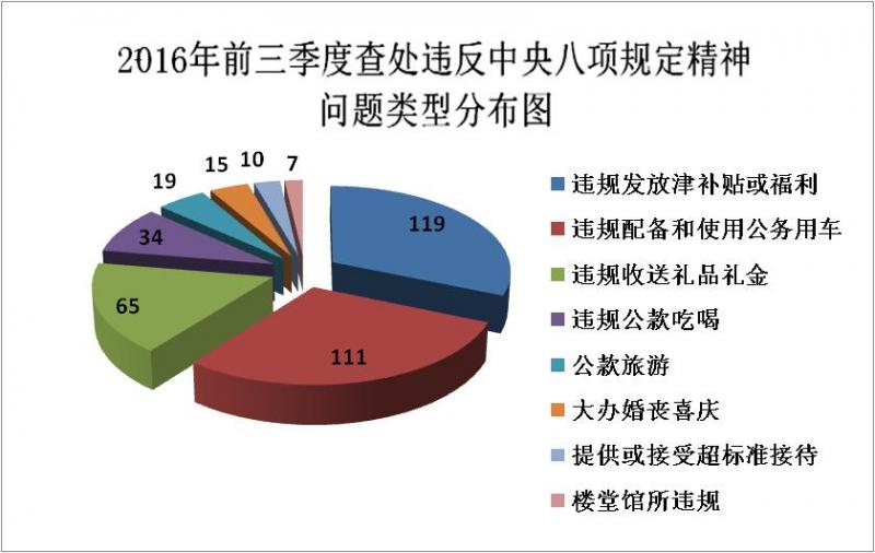 从查处的问题情况来看,发生在2015年以后的占查处问题总数的67.1%。其中,违规发放津补贴或福利、违规配备和使用公务用车问题数占查处问题总数的60.53%。同时,今年以来查处的隐形变异“四风”问题占查处问题数的9.5%,主要表现为变相公款旅游、私车公养、“搭车”发放津补贴等。