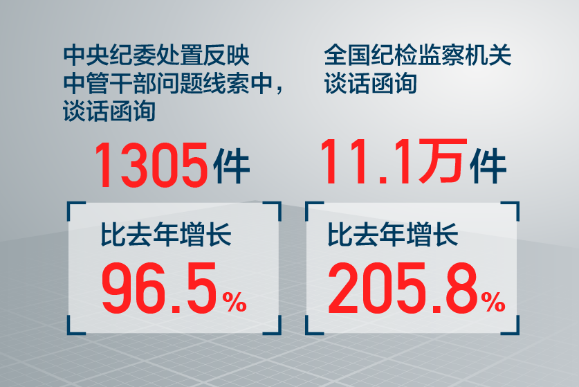 今年1至11月,全国纪检监察机关谈话函询11.1万件次,比去年同期增长205.8%;