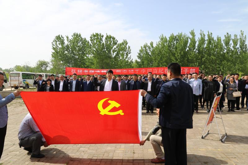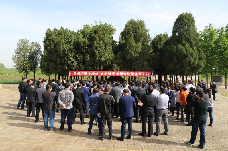 图为:宁陵县纪委全体党员干部在“老坚决”潘从正故居,重温入党誓词。