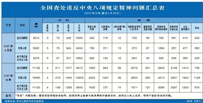 记者5月23日从中央纪委党风政风监督室获悉,今年4月,全国共查处违反中央八项规定精神问题3514起,处理5023人,给予党纪政纪处分3476人。