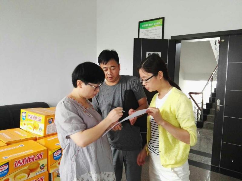 清华镇纪委书记刘棉花、纪委副书记朱晓莉在分发救灾物资。