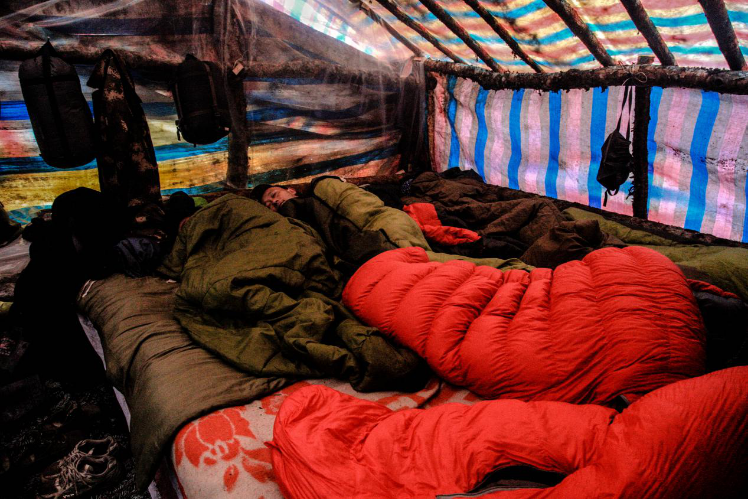 海拔3800多米的戏子岩附近有巡护队唯一一个“监测站”。虽被称作“监测站”,事实却是一个临时落脚的简易窝棚。即使条件简陋,但对于经历了四五天野外露宿的巡护队员来说,已是难得的休息之所。