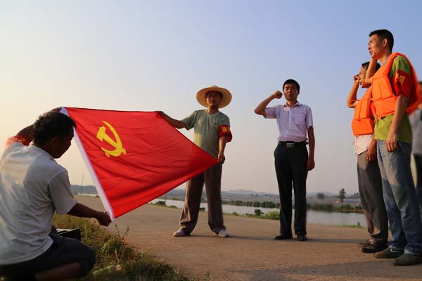 网友“都昌南山南”:2016年7月,鄱阳湖水位不断攀升,已经超过了警戒线1米,正在上预备党员培训班的我被紧急抽调到抗洪抢险指挥部参与抗洪抢险工作,并因此错过了在培训班上和同志们一起宣誓入党的机会。没想到,抗洪抢险指挥部临时党支部单独为我和另外一位预备党员举行了一场入党宣誓仪式!在抗洪一线进行入党宣誓,既是一份荣誉,也是一种激励,在后来那些抗洪的日子里,我时刻以共产党员的标准严格要求自己,不怕苦,不怕累,争当排头兵,最终圆满完成了组织交给的任务。
