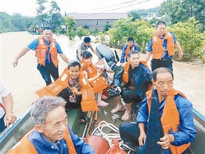 近日,江西省德安县连降暴雨,作为县纪委挂点帮扶乡镇的磨溪乡,所辖港口村四面被水包围,断水断电、交通中断,75名群众被困。得知情况后,县纪委立即成立党员突击队,连夜驱车30多公里驰援。突击队深入一线,与当地干部群众一道连续奋战15个小时,成功将75名受困群众转移至安全地带。图为党员突击队员护送被困群众的情景。黄淑雯 幸佳明 摄影报道
