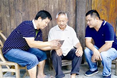 村干部向村民介绍微信监督群。陈晓丽 摄