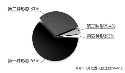 今年1至8月,全省运用监督执纪“四种形态”处置29849人,其中第一、二、三、四种形态分别占比63%、31%、4%和2%,呈现出“倒金字塔”式结构性特征。