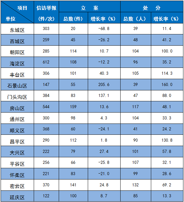 2017年1至8月北京市各区纪检监察机关纪律审查情况表