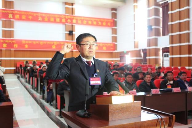 西藏首位监察委员会主任、日喀则市桑珠孜区监察委员会主任郝信斌宣誓。