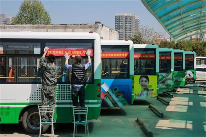 载着“监察法是国家反腐败立法”等标语的150辆公交车行驶在荥阳市区各主干道。