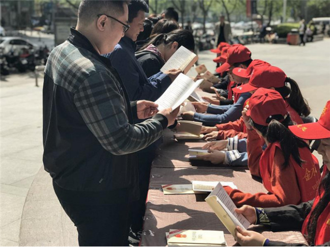河南省纪检监察系统开展“全民参与,人人学习监察法”活动,纪检监察干部以志愿者身份走上街头,向市民讲解监察法知识。