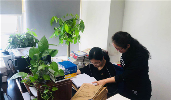 温岭市纪委市监委案件审理室青年干部正在对各镇(街道)报送的案卷证据材料及程序材料进行认真审核。