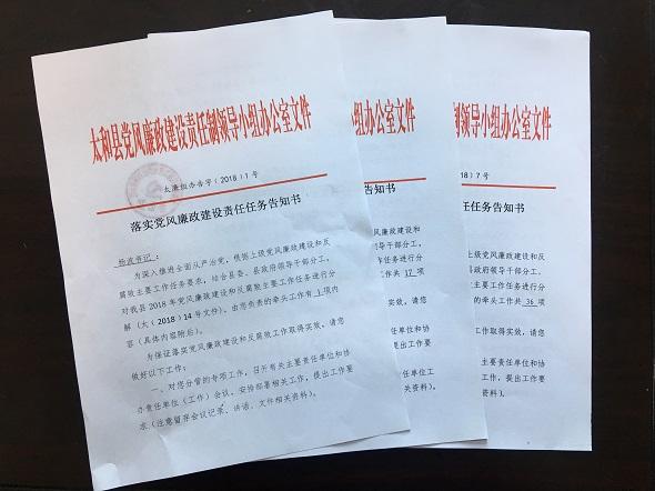 安徽太和县:18份党风廉政建设任务告知书促主体责任落实