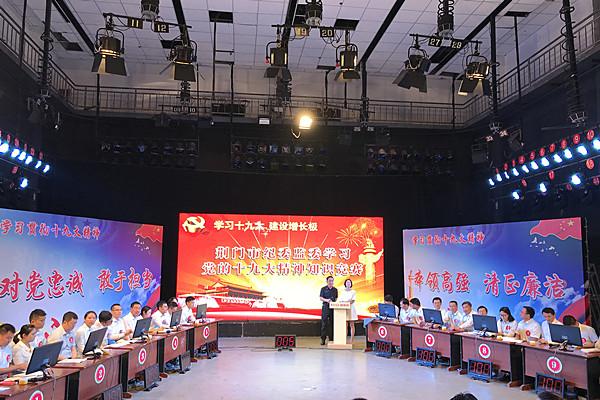 5月3日上午,荆门市纪委监委举办学习党的十九大精神知识竞赛活动,从该市纪委监委机关和各派驻(出)机构推选的30名选手,以抽签方式组成10支代表队,参加当天的竞赛活动。活动中,个人必答、集体共答、小组抢答、风险问答等比赛环节环环相扣,各代表队参赛选手沉着应对、密切配合,你追我赶、过关斩将,以扎实的理论功底和饱满的精神状态,积极踊跃回答着每一道竞赛题,气氛活跃而紧张,上演了一场精彩纷呈的理论知识“大比拼”。