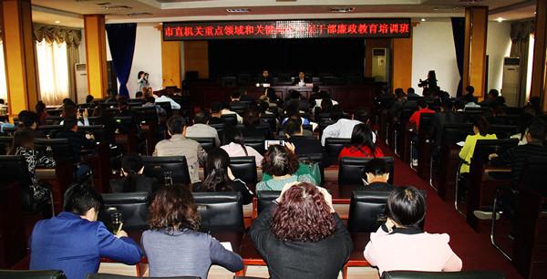 重点领域和关键岗位,处于廉政风险的高危区位,该市以党风廉政建设“宣教月”为契机,组织全市各机关部门财务、人事、执法监督等科室的中层干部,参加警示教育活动,敲响拒腐防变警钟,做到知敬畏 存戒惧 守底线,防止“小官贪腐”“小官巨贪”的现象发生。