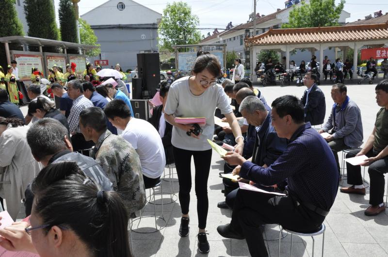 看完警示教育片后,给乡村干部群众发放了廉政宣传彩页,将《宪法》《监察法》等法纪知识载入宣传页,送到群众手中。
