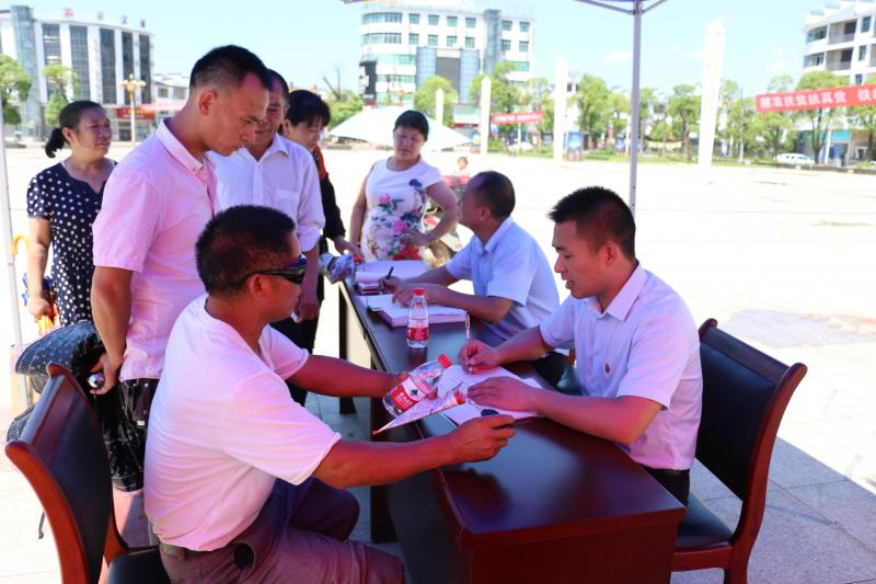 图为近日,该县纪检干部在休闲广场摆摊设点,向群众宣传信访举报知识,广泛收集基层干部违纪问题和群众意见建议。