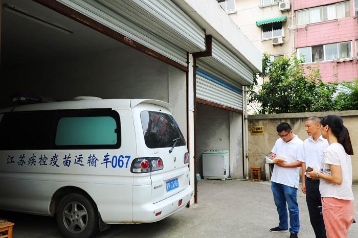 图为该市纪委监委工作人员正在疾病预防控制中心检查疫苗管理情况。(仪征市纪委监委)