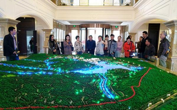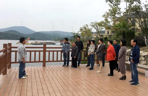 图为当日,调研组在狸桥镇昆山湖旅游度假区调研情景。