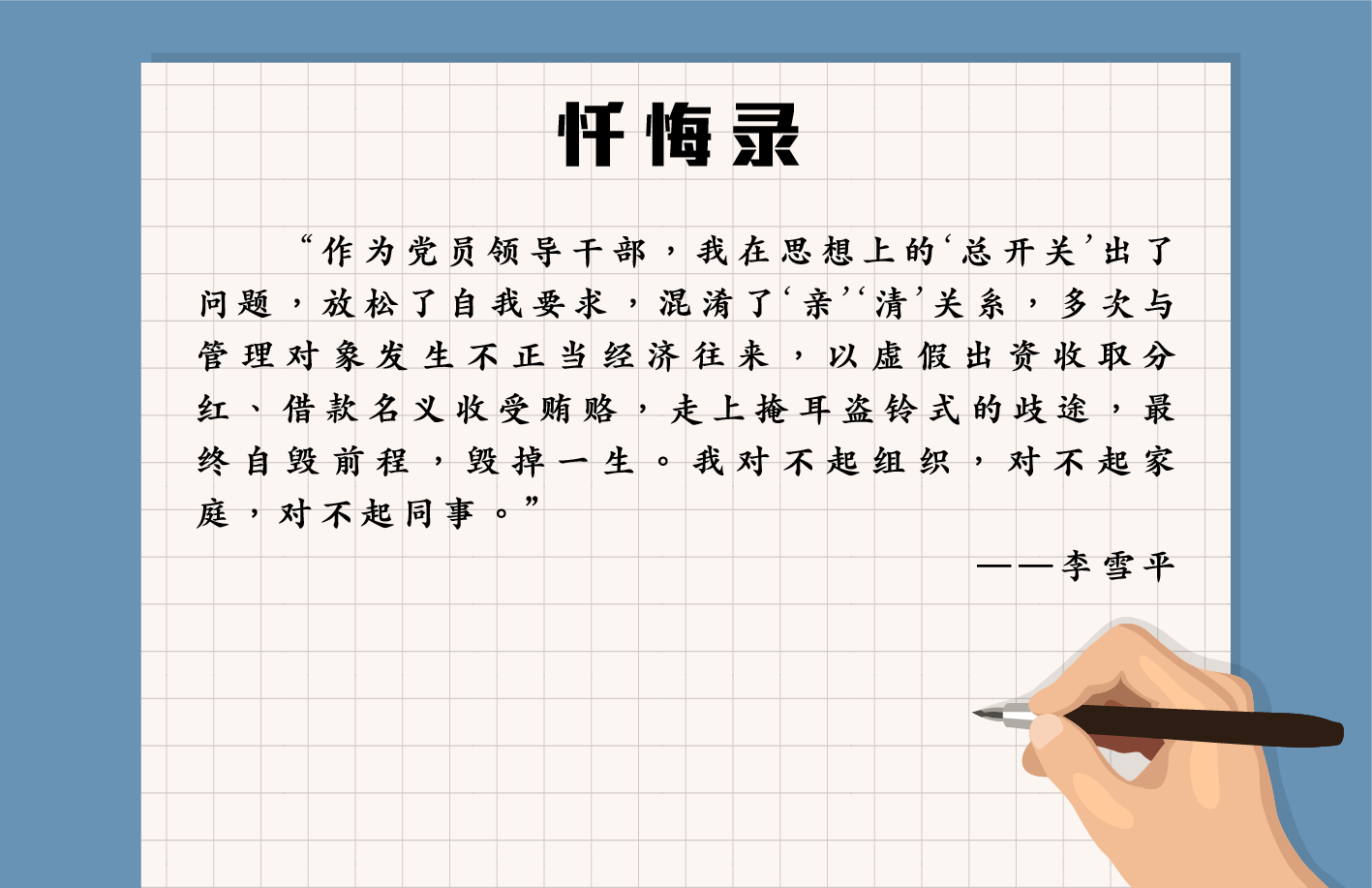 “思想防线垮塌,‘利’字冲昏头脑,‘贪’字占据大脑……”近日,郴州市北湖区水务局(原水利局)原党组成员、副局长刘建平在忏悔书中写道。...