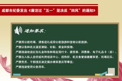 五一在即,为深入贯彻落实中央八项规定精神、四川省委省政府十项规定精神和成都市委市政府实施办法,坚决反对“四风”,促进全市党员干部廉洁过节,成...