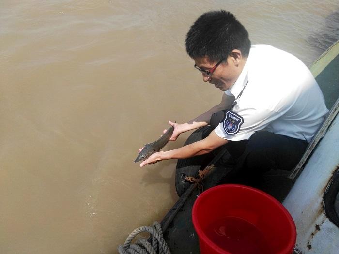 8月24日11时许,安徽省宣城市暨宣州区渔政部门工作人员驱车赶到芜湖长江轮船码头,将当地渔民误捕的一条珍稀野生中华鲟放归长江。...