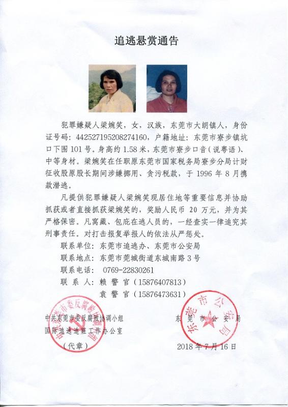 近日,广东省东莞市发布通缉令及追逃悬赏通告,通缉并悬赏20万元追逃一名潜逃20余年的职务犯罪嫌疑人。这是国家监察体制改革以来,东莞市监委运用...